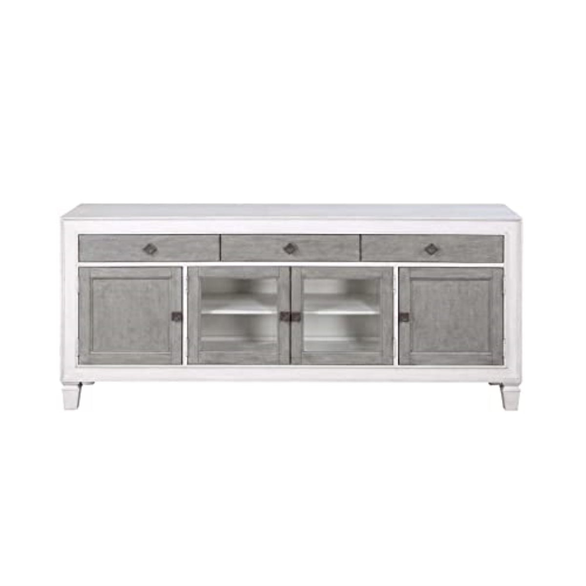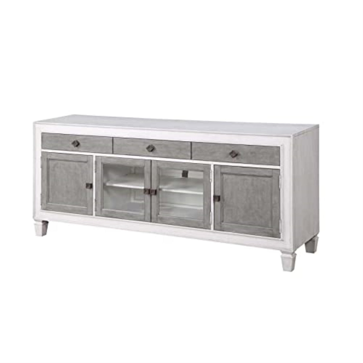 Acme Katia Wooden Rectangular TV Stand with 4-Doors in Rustic Gray and White
