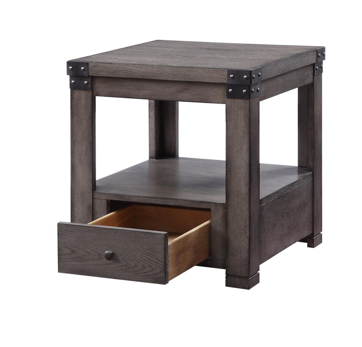 Acme Melville Square Wood Top 1-Drawer End Table in Ash Gray
