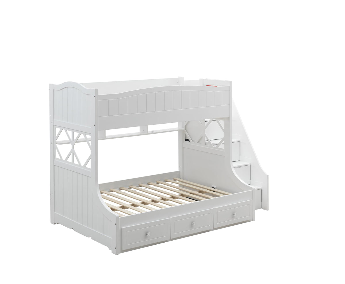 Acme Meyer Twin/Full Bunk Bed With Storage Ladder And Drawers In White