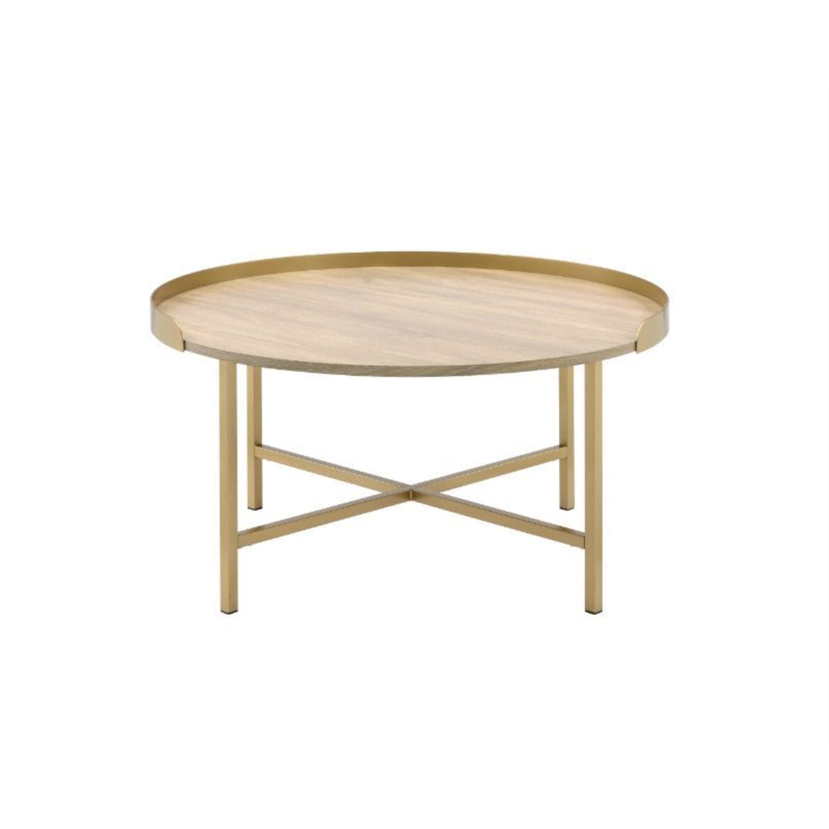 Acme Mithea Round Wooden Coffee Table With Tray Top In Oak And Gold