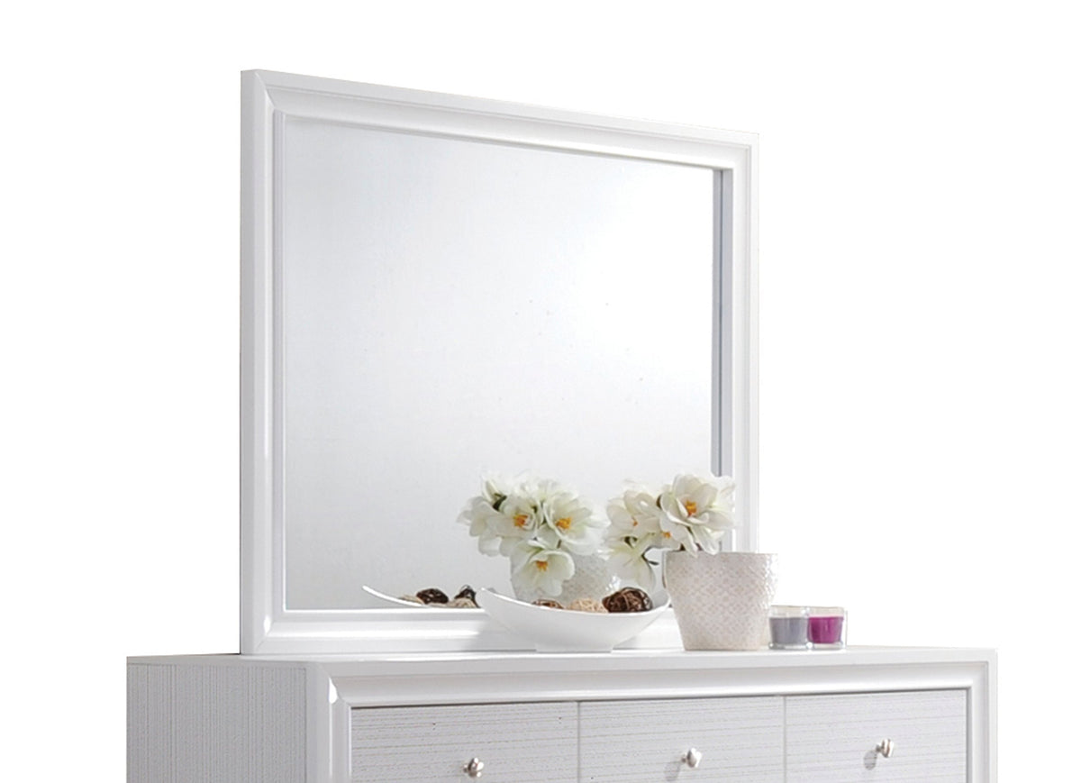 The Naima collection offering a warm and stylish relaxing environment. The White wood frame gives the mirror a clean, fresh look that will brighten up any wall space.