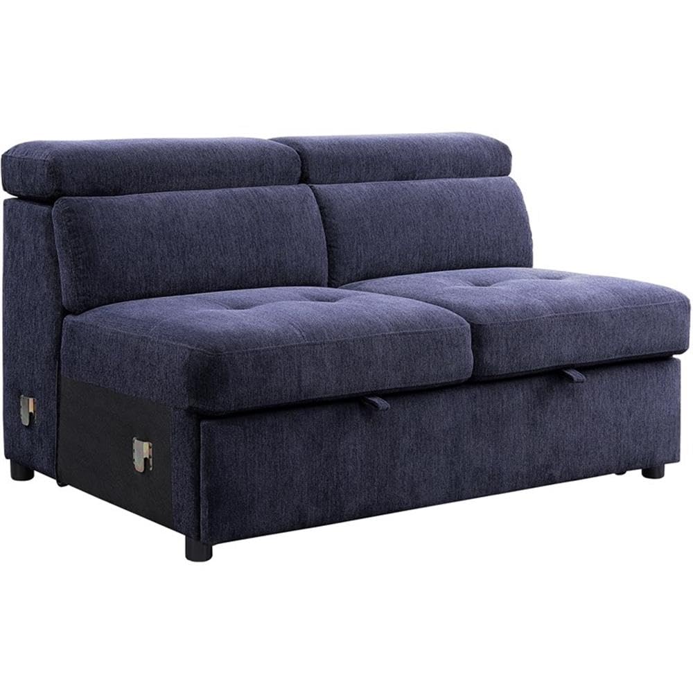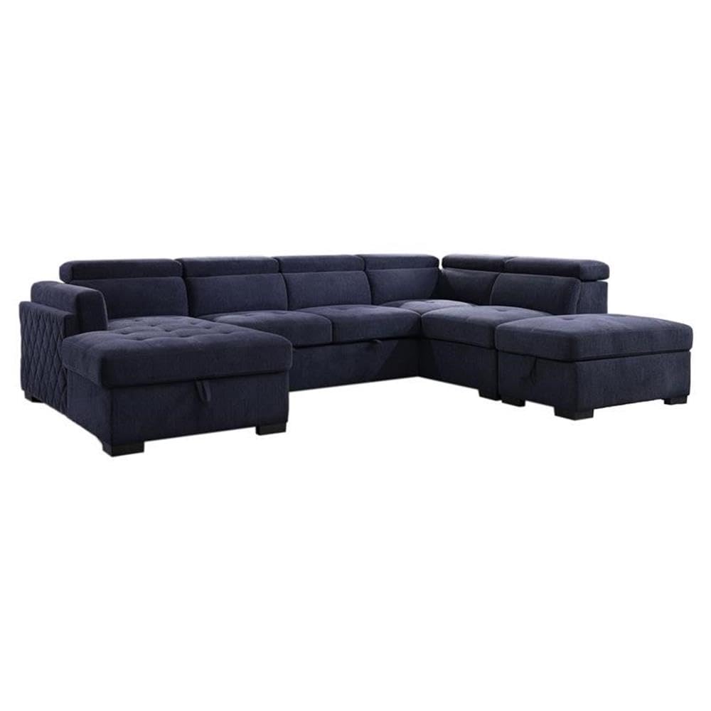 Acme Nekoda Fabric Sleeper Sectional Sofa with Storage and Ottoman in Navy Blue
