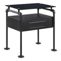 With the tempered glass top on this modern console table, it seems a metal shelf floats in the air. The nightstand is constructed of a metal tube that is thick and durable enough to strongly support the drawer inside or on it. This piece is ideal for holding a lamp or displaying framed photos and other treasured objects in your living room, bedroom, or hallway.