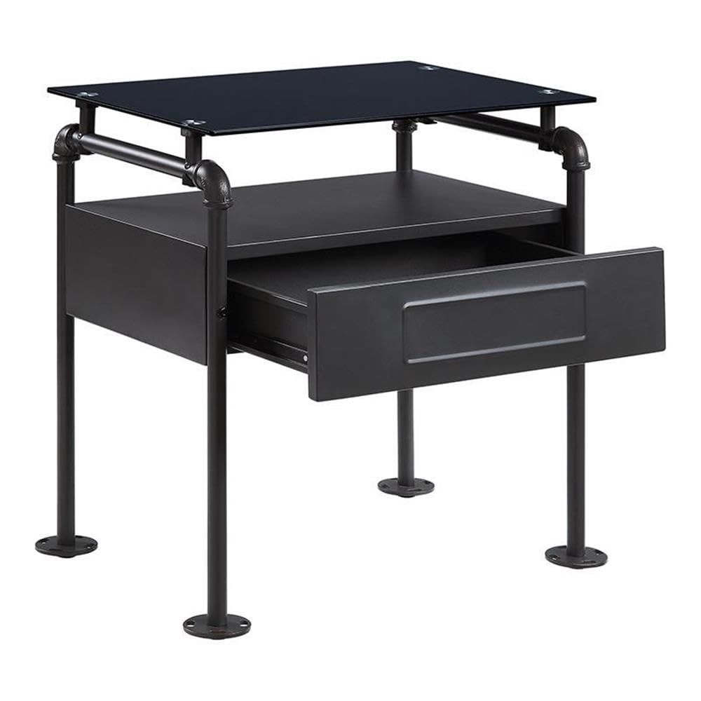 Acme Nicipolis Glass Top 1-Drawer Nightstand with Compartment in Sandy Gray