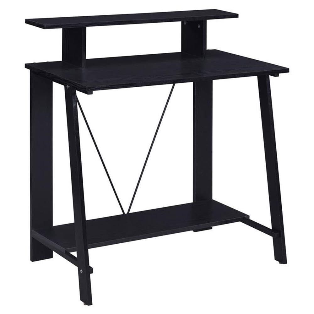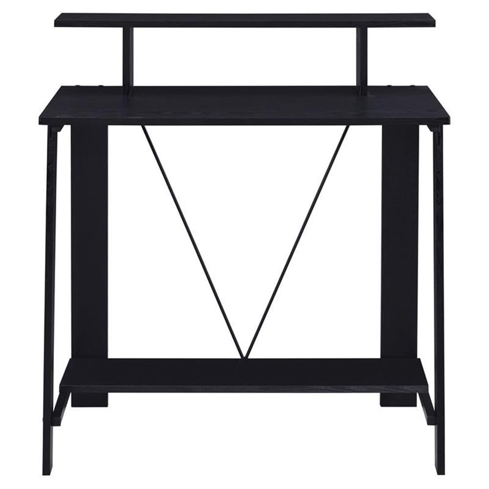 Acme Nypho Wooden 2 Shelves Writing Desk With Metal Frame In Black