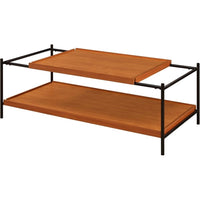 Keep things well-organized with this Oaken coffee table. The honey oak finished rectangular top and bottom shelf gives basic and additional storage space to your living room. Featuring black open frame and legs, this table allows you to easily access your belongings from many faces.