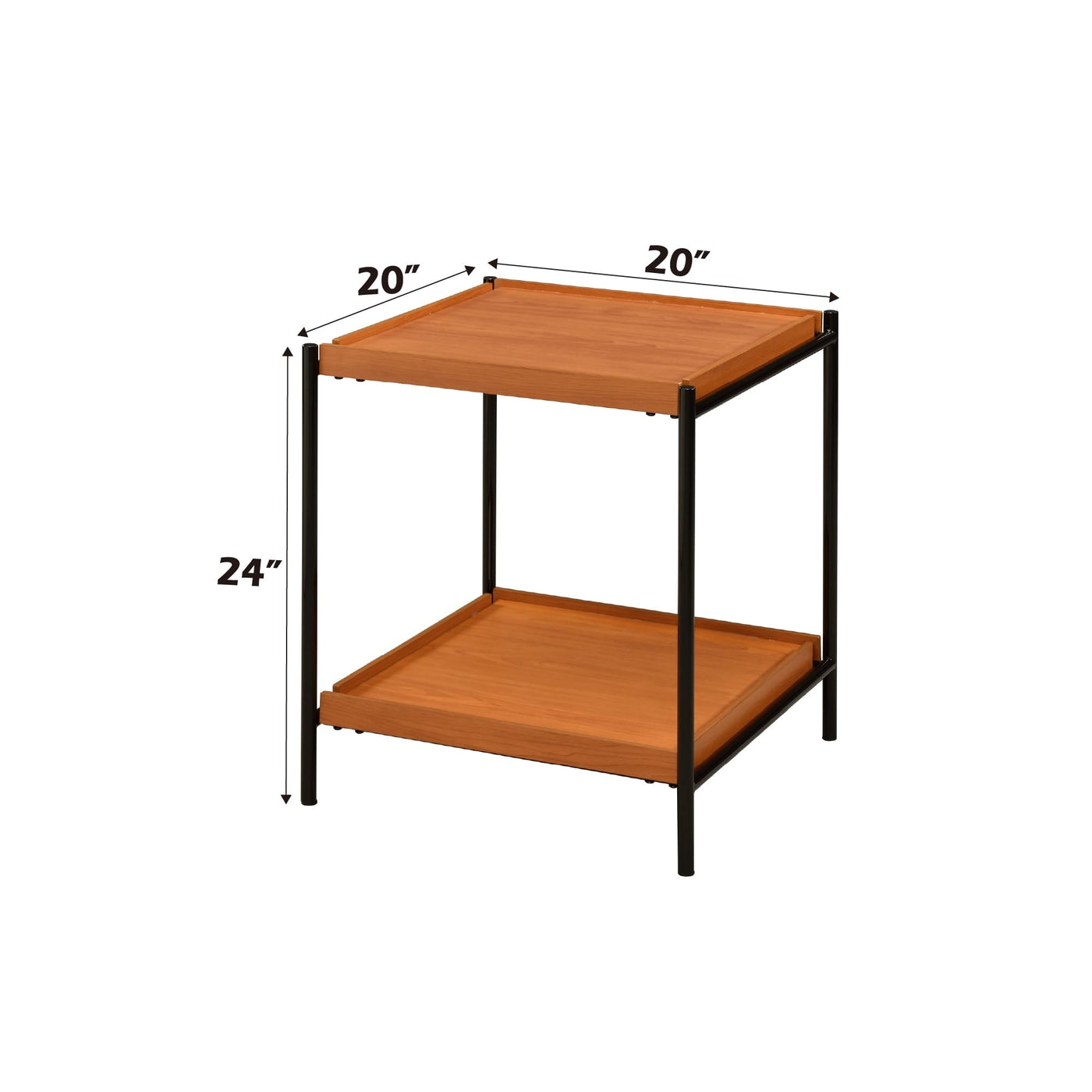 Acme Oaken Square Wooden End Table With Bottom Shelf In Honey Oak And Black