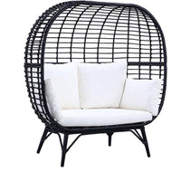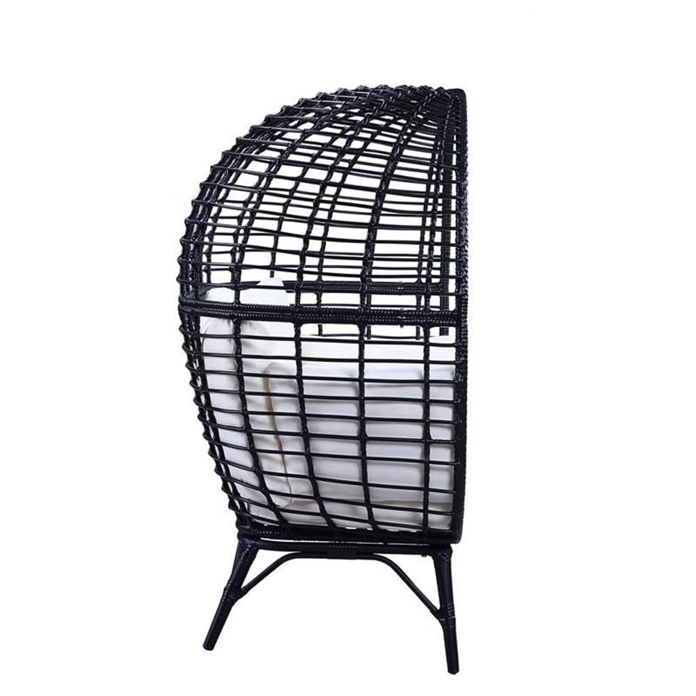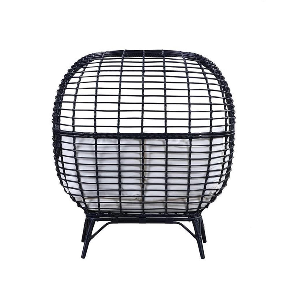 Transform the mundane to heightened states of consciousness with an outdoor lounge chair. This patio lounge chair is comprised of a sturdy black metal stand and rattan seat. Surround yourself with plush fabric cushions to complete entry into a relaxed state in the patio lounge chair.