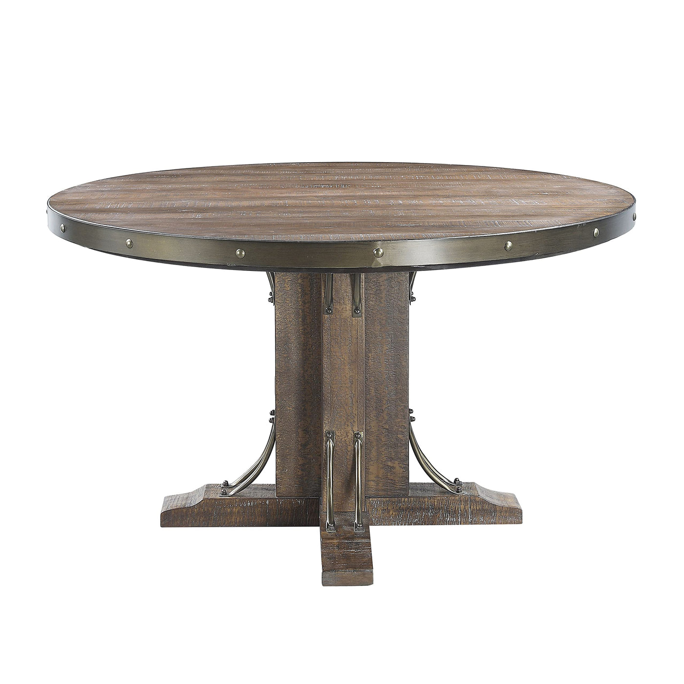 Acme Raphaela Round Wooden Dining Table in Weathered Cherry
