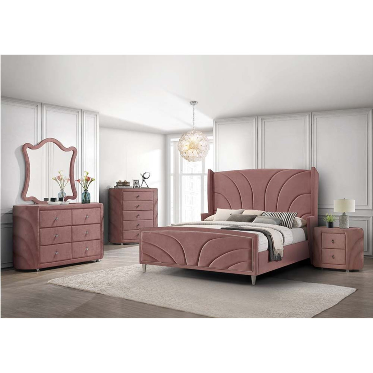 Acme Salonia Tufted Velvet Upholstery Queen Bed with Wood Leg in Pink