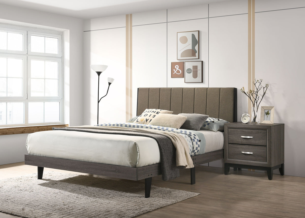 With weathered gray finish, this upholstered headboard with vertical line design will bring you a relaxing but not monotonous environment in your bedroom. The Valdemar collection has plentiful space to store your folded clothing in dresser and chest.