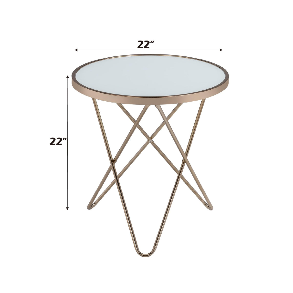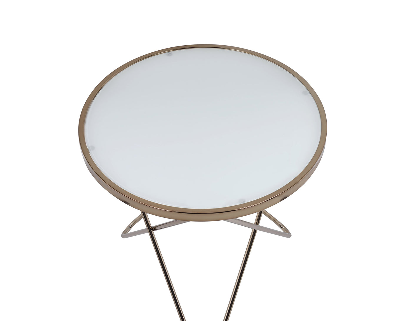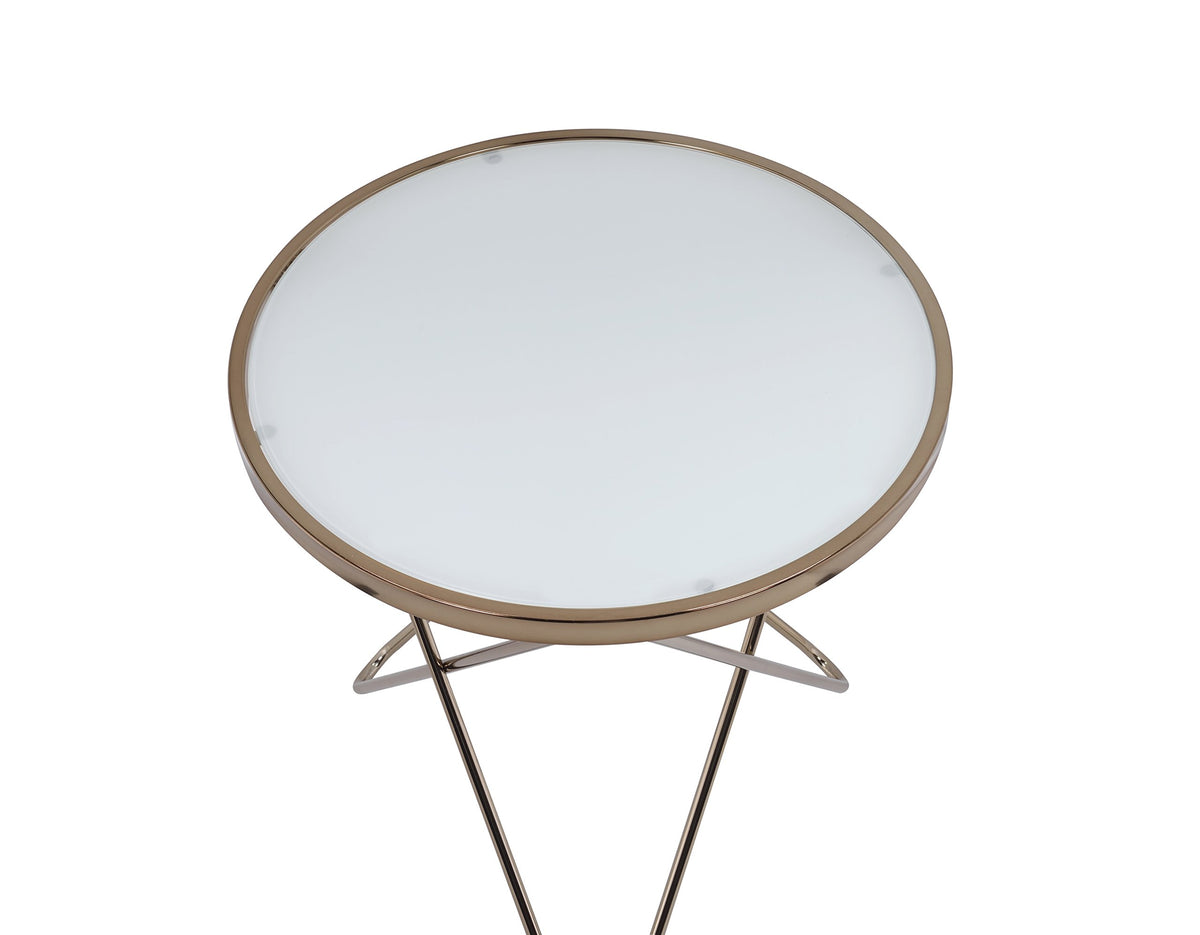 Acme Valora Round Glass Top End Table In White Glass And Gold
