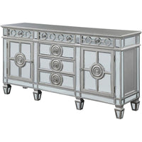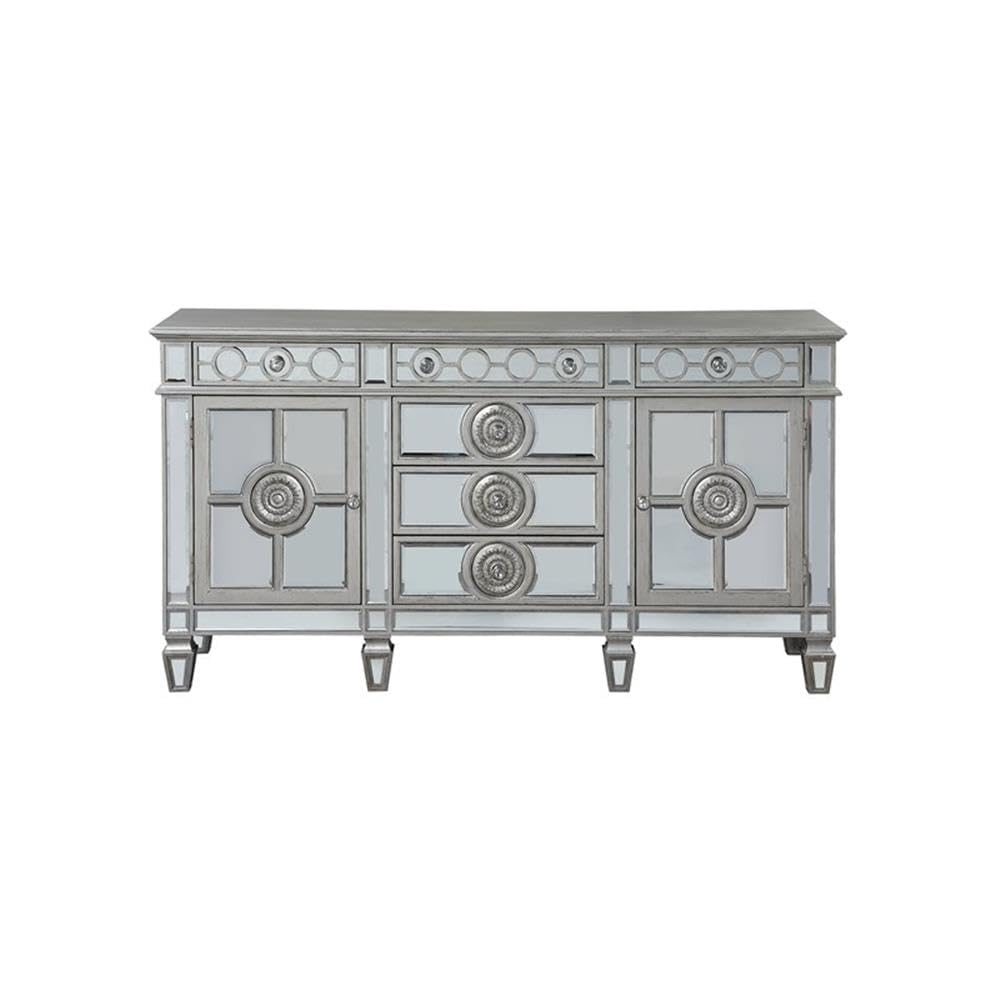 Acme Varian 6-Drawer Wooden Server with 2 Doors in Mirrored and Antique Platinum