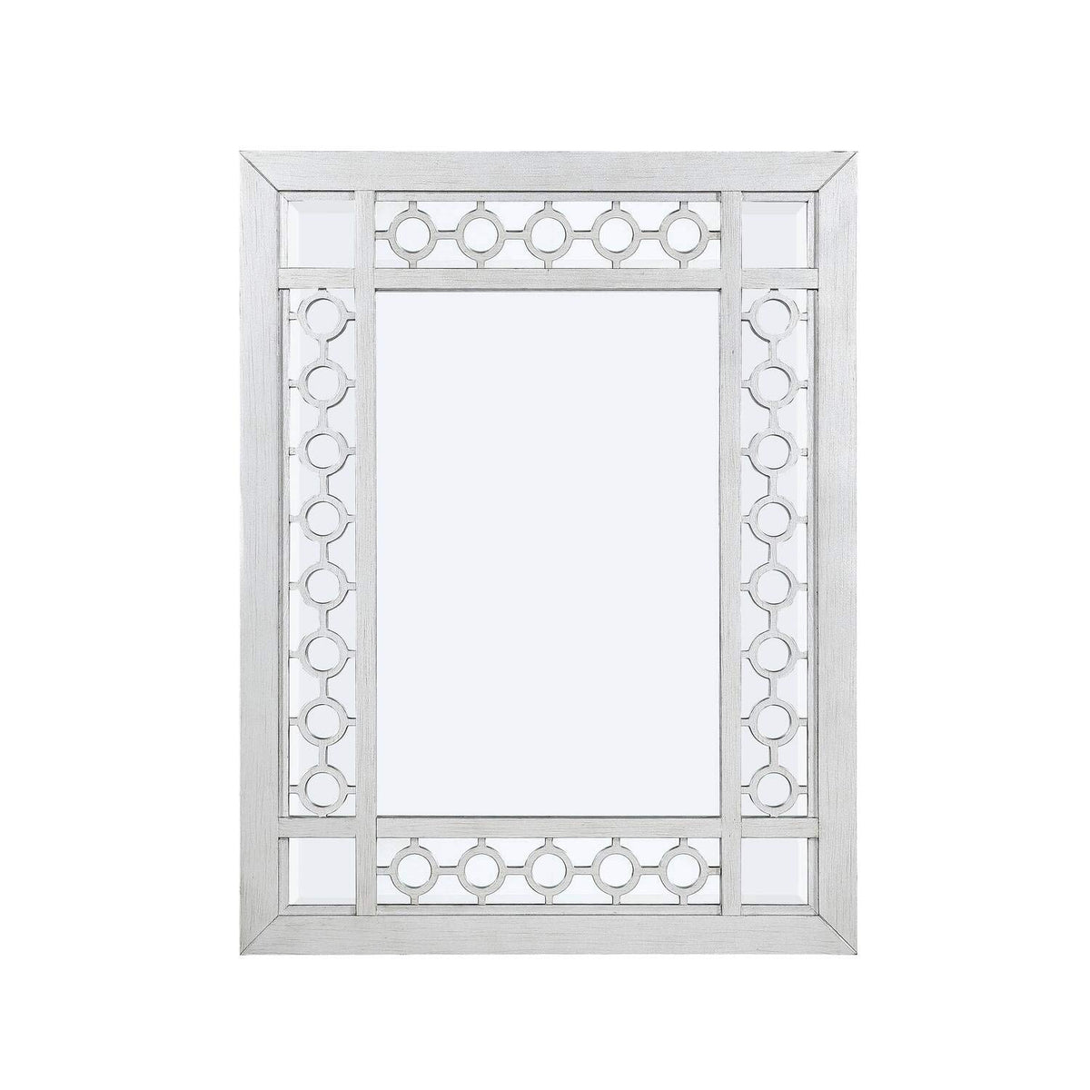 Acme Varian Rectangular Wooden Frame Mirror In Mirrored And Antique Platinum