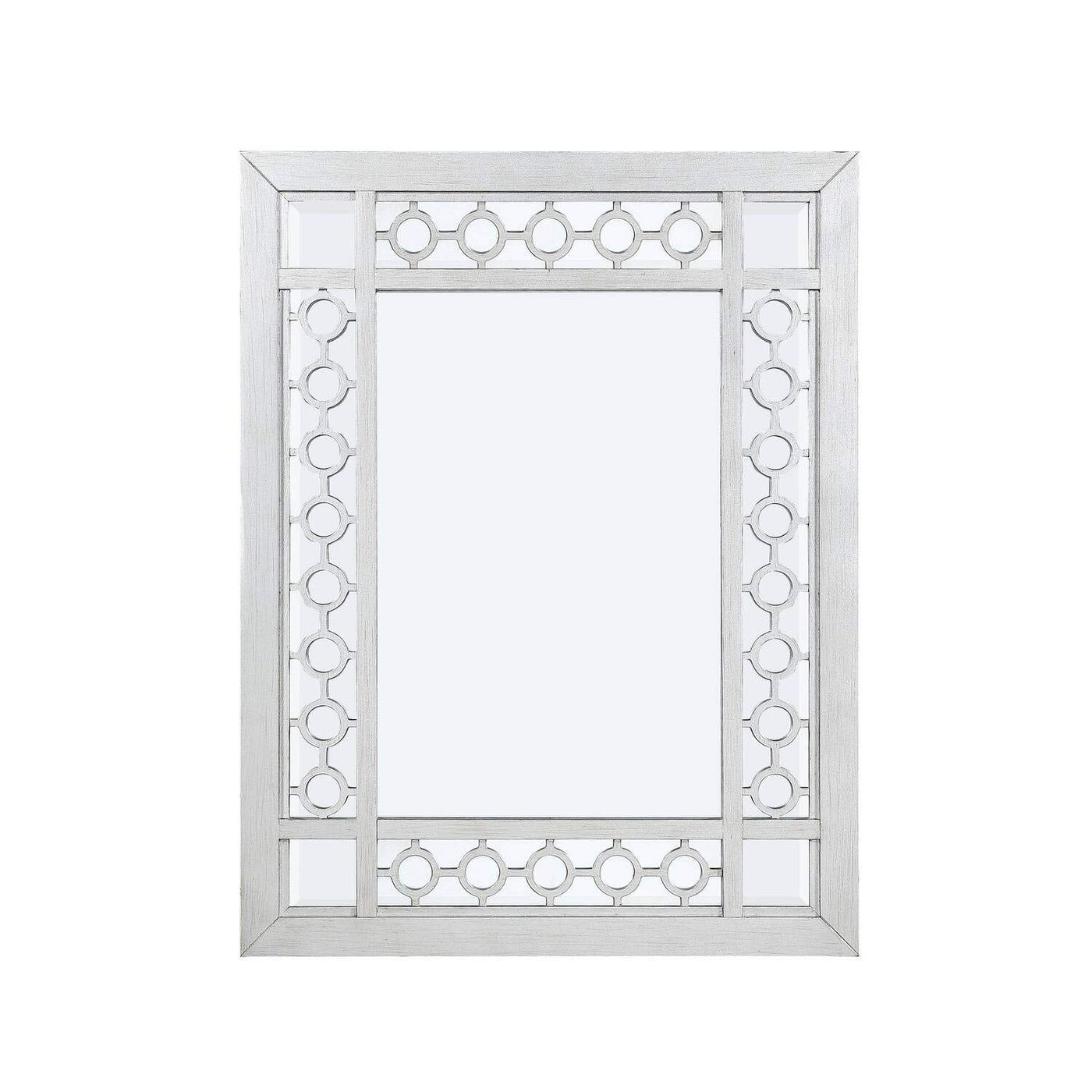 Indulge in glam-luxe style with the Varian Mirror that seduces the senses. Decorative trim features an attractive raised geometric design, while antique platinum all over the mirror frame give a gorgeous touch of luxury. Generous bevel on mirror inlay add depth to the design. The Varian Mirror really makes a style statement.Features:Rectangular MirrorBeveled EdgeRaised Geometric TrimWooden FrameRaised Geometric TrimContemporary StyleSpecifications:Product Dimensions: 31"L x 2"W x 40"HProduct Weight: 36 lbs
