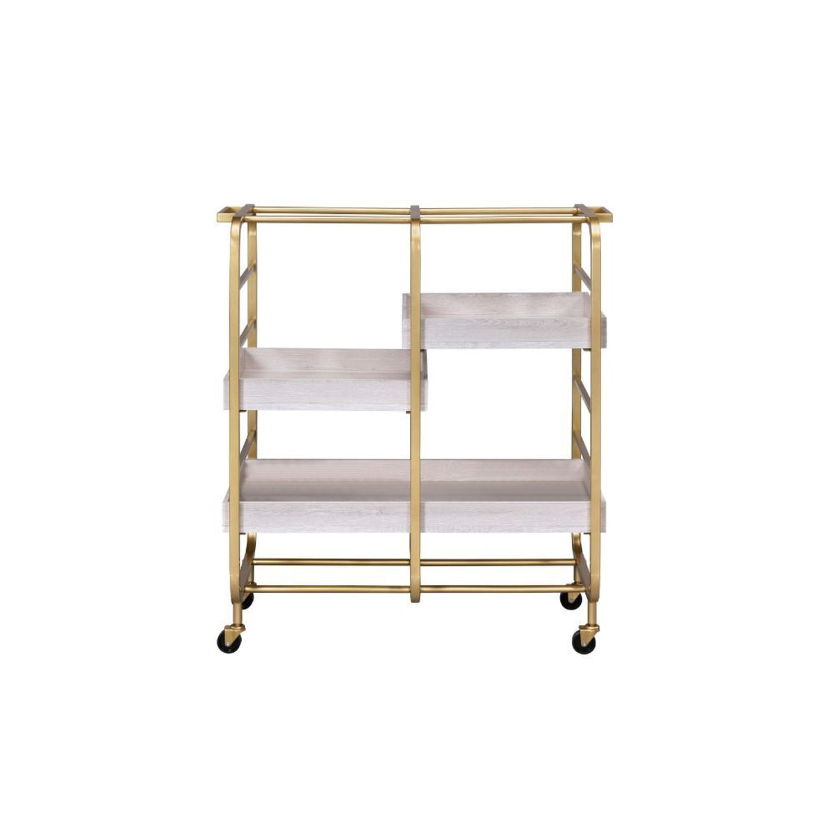 The Vorrik serving cart blends modern design with 3 wood finish adjustable trays to change the storage compartments with your desire. Open frame made of metal with black nickel finish. The caster wheels provide the convenience of mobility and make this serving cart a entertainment piece.