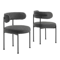 Experience luxury and modern sophistication with the Albie Boucle Dining Side Chairs - Set of 2. Upholstered in nubby textured boucle fabric, this side chair set exhibits a chic silhouette with its rounded seat and curved backrest, enhancing your dining area s aesthetic. Resting on adjustable non-marking foot pins to provide stability and protect your flooring, the bases of these dining chairs are crafted from sleek tubular metal that s the perfect complement to the charming upholstery. The dense padded foam seat cushions and backrests offer a premium seating experience during everyday mealtime or entertaining. Minimal assembly is required with easy to follow instructions. Weight Capacity: 330 lbs.Set Includes:Two - Albie Dining Chairs - Set of 2