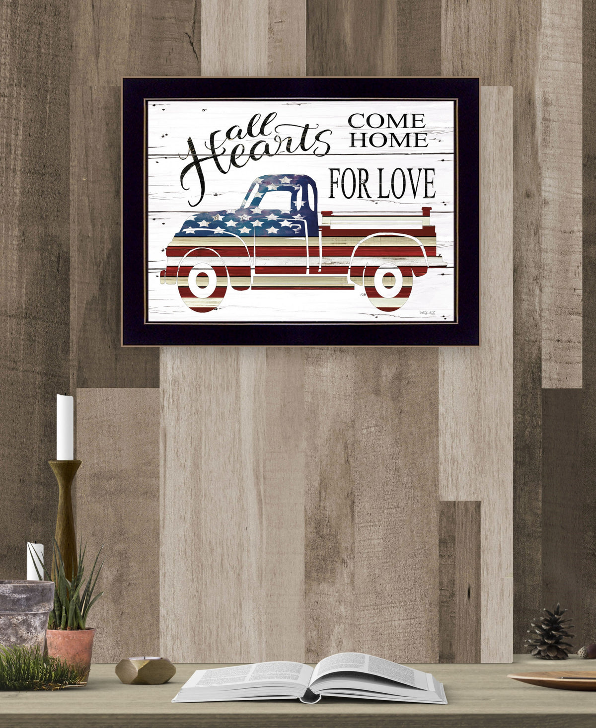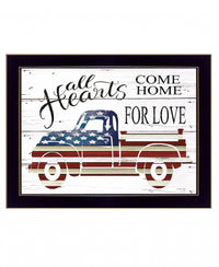 This all hearts come home for love truck 1 black framed print wall art will add a beautiful decorative accent to your decor. This print is a visual artistic expression that allows you to decorate your space in style. Reproduced for you on wood, this hanging accent will be a trendy and fashionable way to dress your in a rustic and modern farmhouse vibe. Adding this hanging wall art to opportunyour space to make your room feel more attractive. ity to create a focus. al point in the room with this wonderful wall decor option. 14' H x 18' W x 1' D