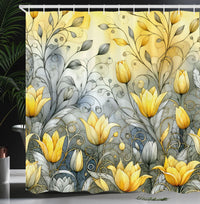 Ambesonne Yellow Shower Curtain, Nostalgia Feel Flowering Tulips With Tender Petals And Curlicue Leaves, Cloth Fabric Bathroom D