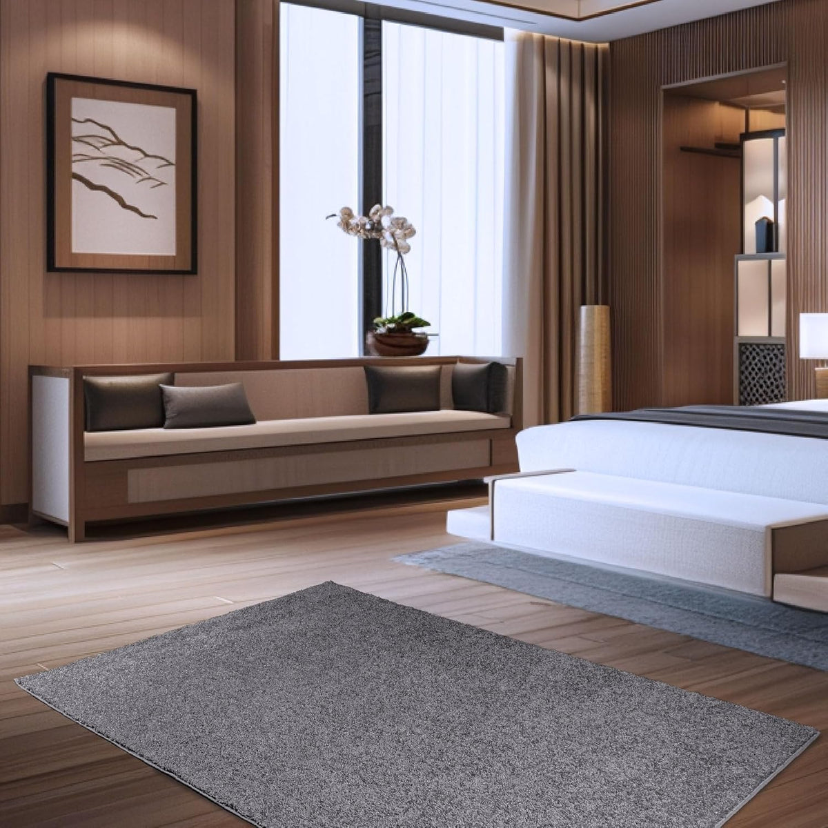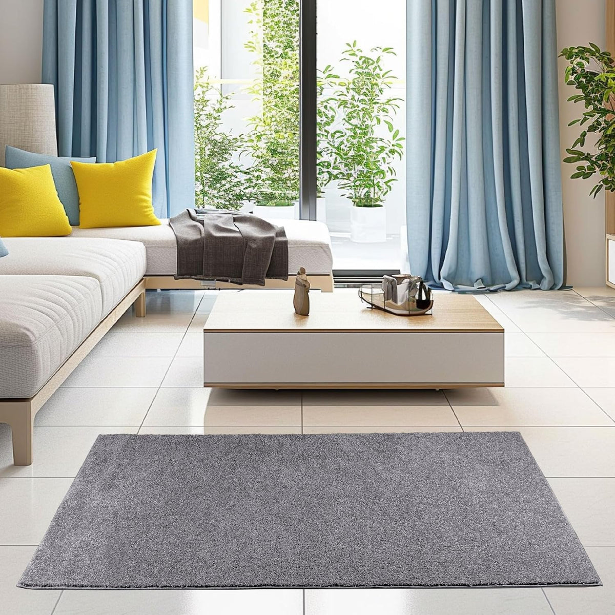 Q: Can this rug be used in different rooms of the house?A: Absolutely! Its versatile design and solid grey color make it perfect for various spaces, including the living room, bedroom, hallway, and dining room.