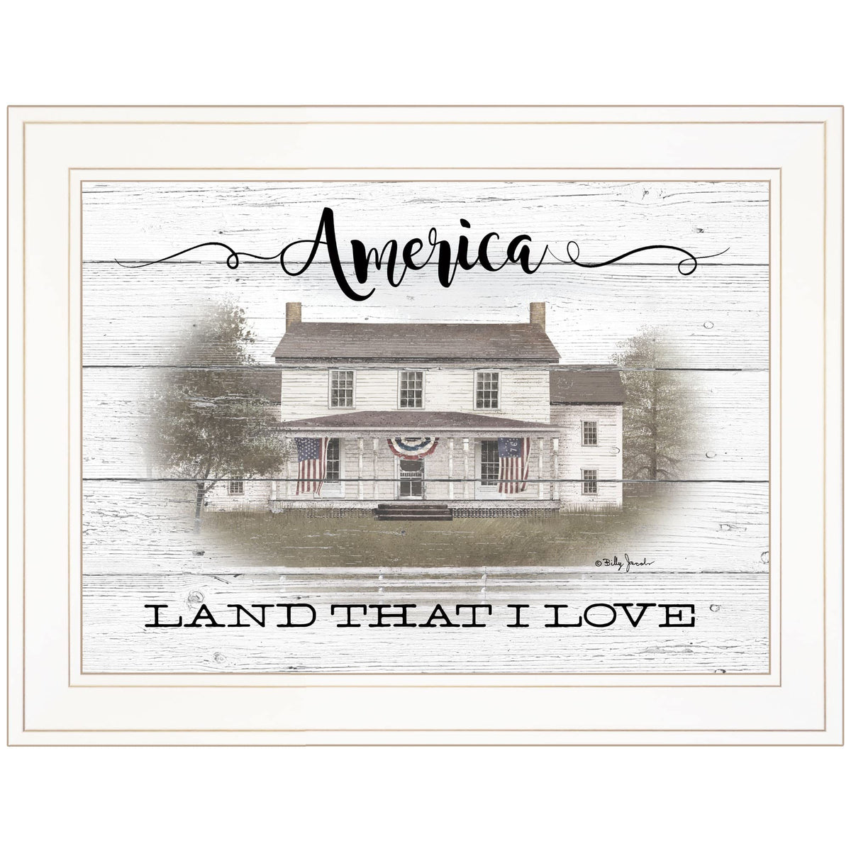 Bring some sizzle to your space with this eye-catching America Land That I Love white framed print wall art. This print is a visual artistic expression that allows you to decorate your space in Reproduced for you on paper, this hanging decorative accent will be a trendy and fashionable way to dress your walls. Adding this hanging wall art to your space to make your room feel more enjoyable. Instliven up your space with this art that brings color and to your room. 15' H x 19' W x 1' D