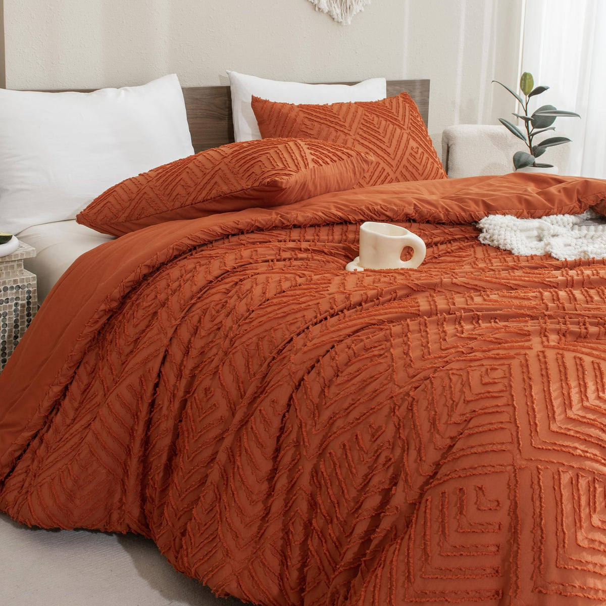 Andency Burnt Orange California King Comforter Set, 3 Pieces Terracotta Boho Tufted Cal King Bed Comforter, Oversized Soft Lightweight Down Alternative Bedding Set (104X96In, 2 Pillowcases)