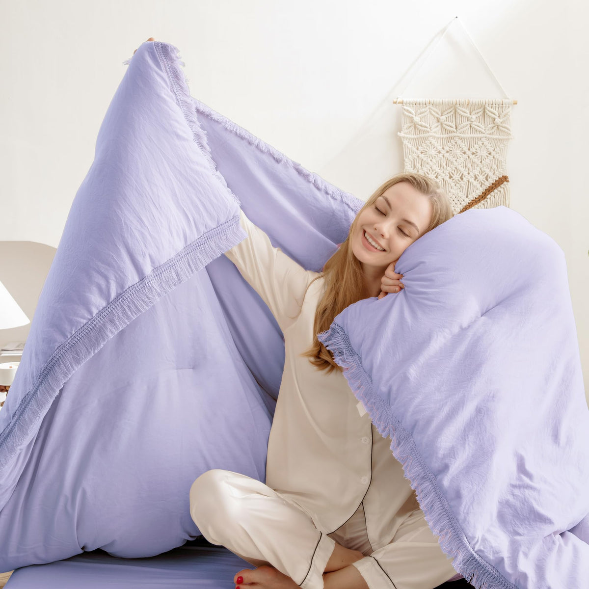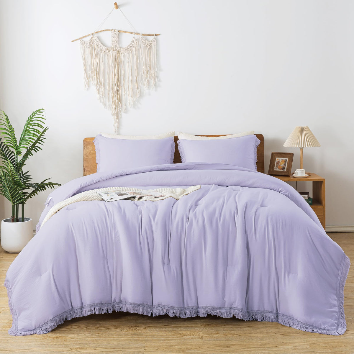 Andency Comforter King Size Bed Set Lavender, Purple 3 Pieces Boho Lightweight Winter Bedding Comforters & Sets, All Season Soft Tassel Bed Set (104X90In Comforter & 2 Pillowcases)