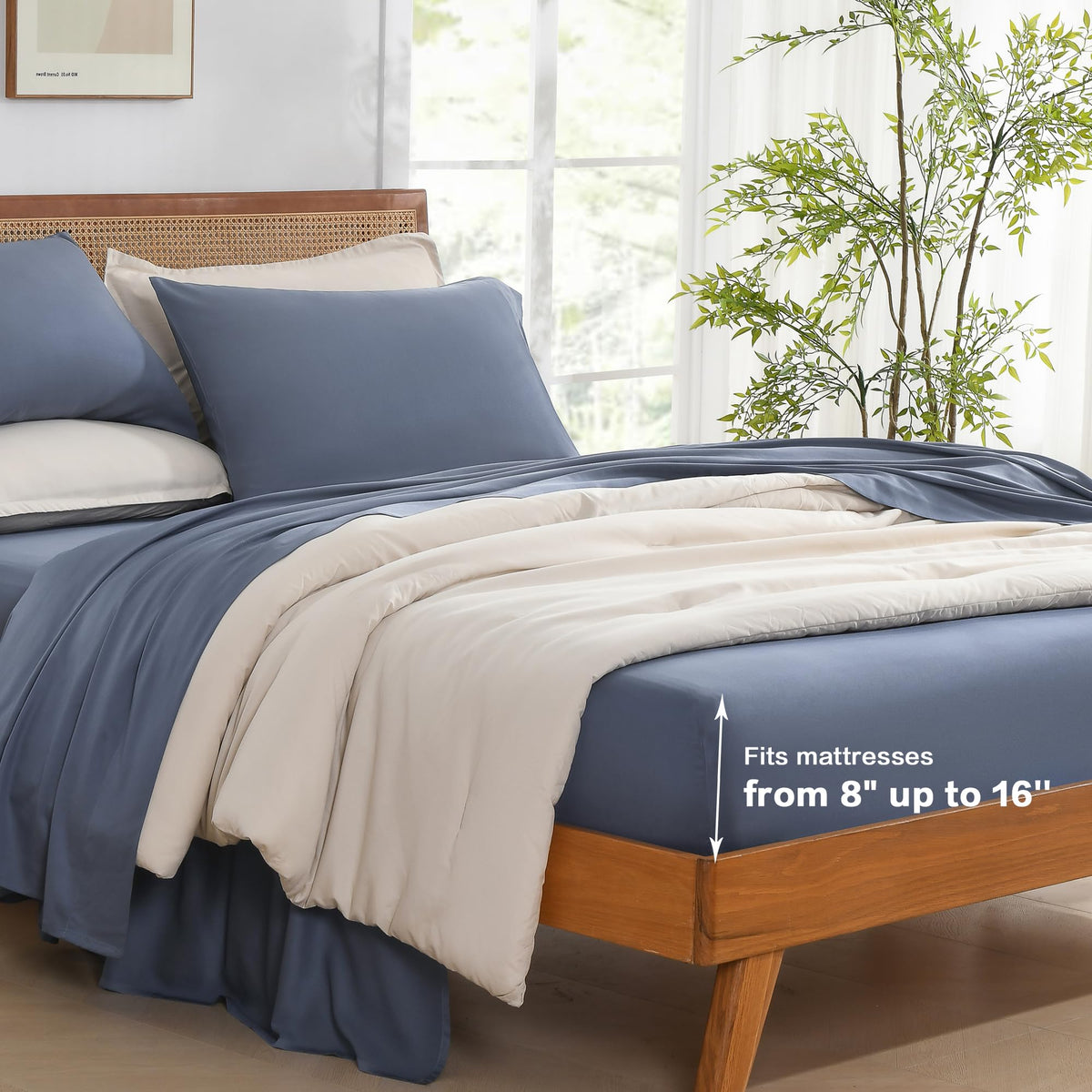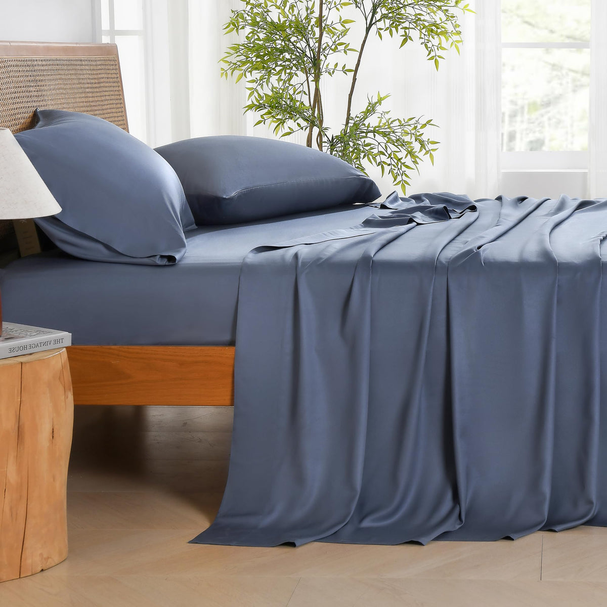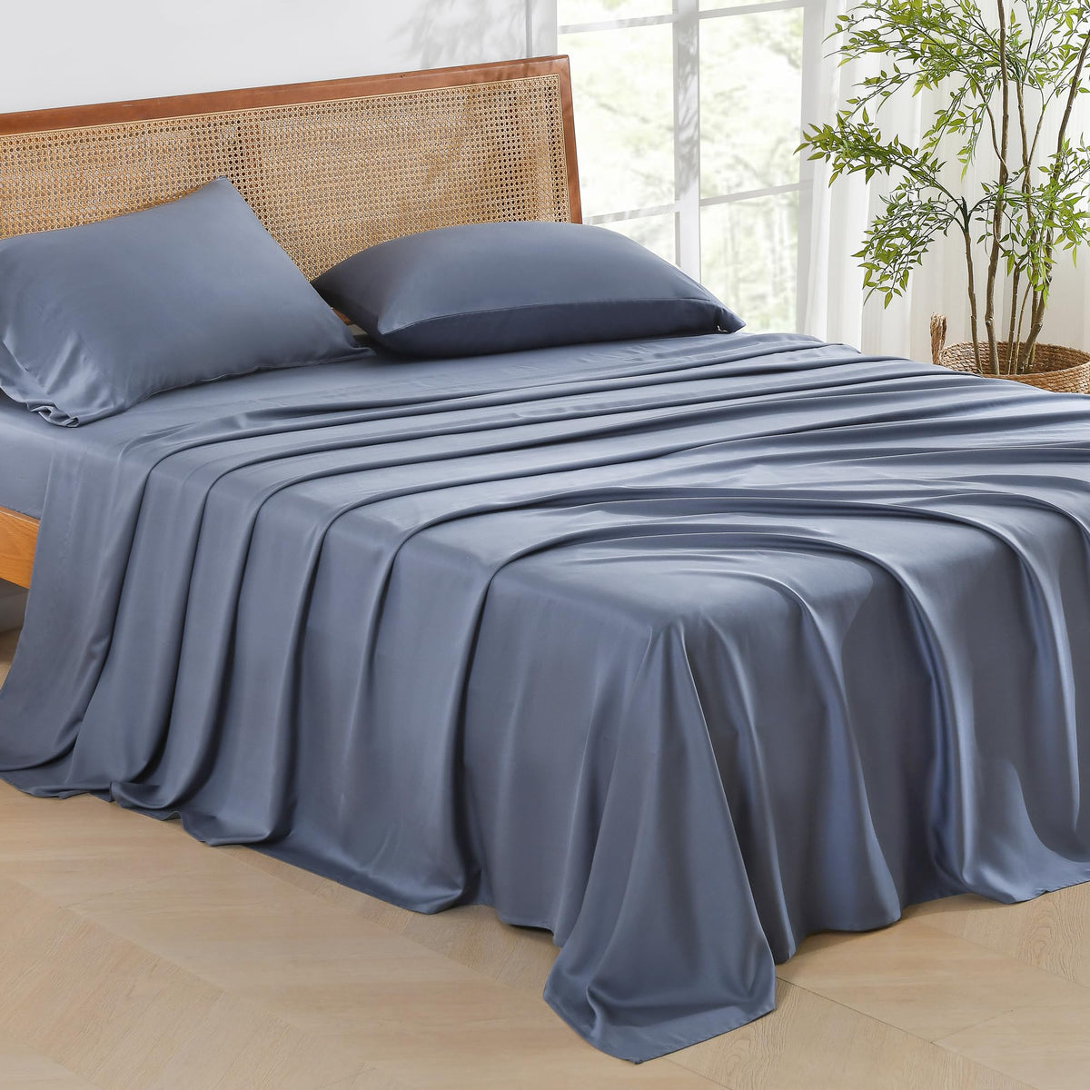Andency Dark Blue Grey Full Size Bed Sheets, 100% Viscose Derived From Bamboo, Cooling Full Sheets, Deep Pocket Up To 16', Silky Soft Bed Sheets, Hotel Luxury Breathable Bedding Sheets & Pillowcases…
