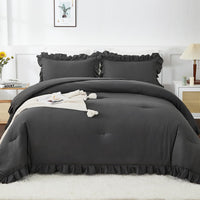 Andency Dark Gray Twin Size Comforter, 2 Pieces Kids All Season Ruffle Bed Comforter Set, Boho Lightweight Solid Farmhouse Shabby Chic Bedding Comforters & Sets (66X90Inch Comforter)