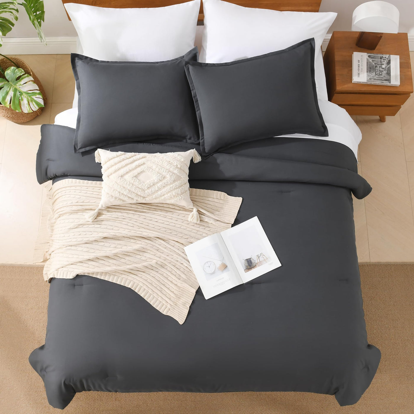 Andency Dark Grey Comforter King Size - 7 Pieces Gray Bed In A Bag King Bedding Comforter Sets, Summer Plain Soft Lightweight Comforter With Fitted Sheets, Flat Sheets, Pillowcases & Shams