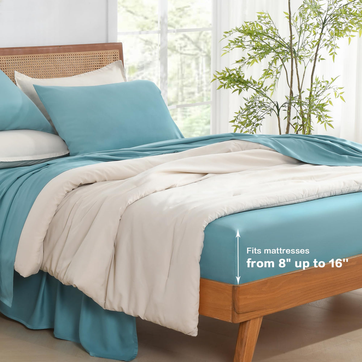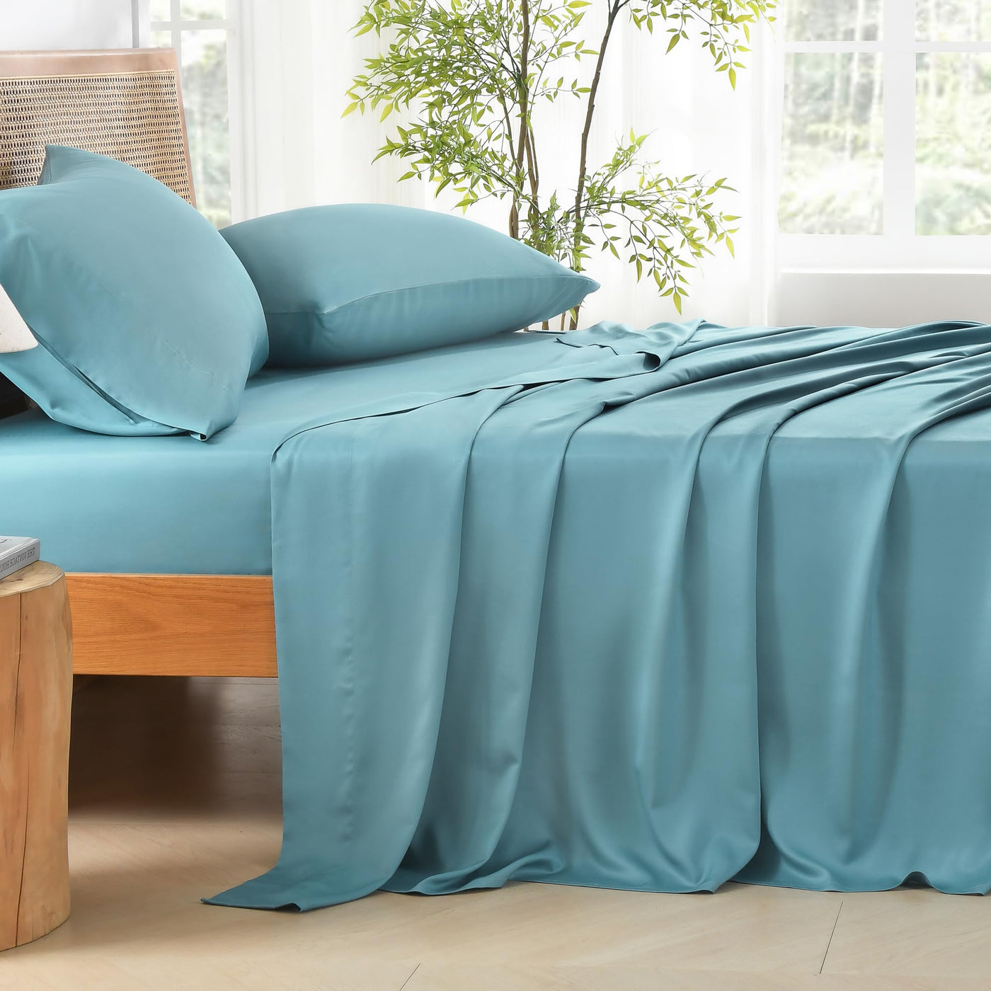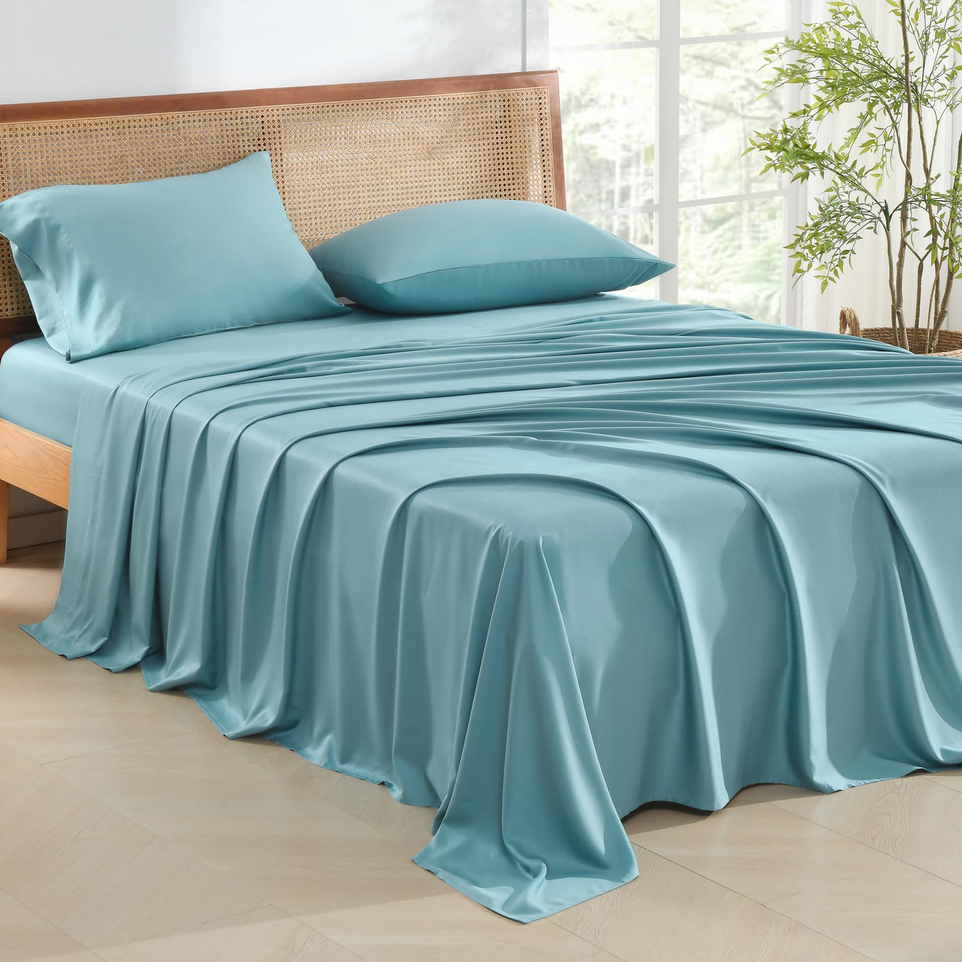 Andency Grayish Teal Queen Sheets Set, 100% Viscose Derived From Bamboo, Cooling Bed Sheets Queen Size, Deep Pocket Up To 16', Silky Soft Sheets, Hotel Luxury Breathable Bedding Sheets & Pillowcases…