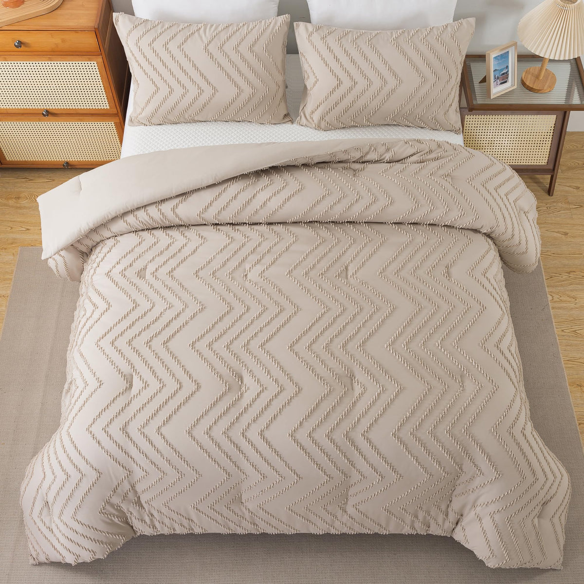 Andency Khaki Twin/Twin Xl Comforter Set, Twin Bed Comforter For College Dorm Girls Boys Kids Boho Tan Soft Warm Cute Comforter, 2 Pieces Taupe Aesthetic Chevron Bohemian Bedding Set