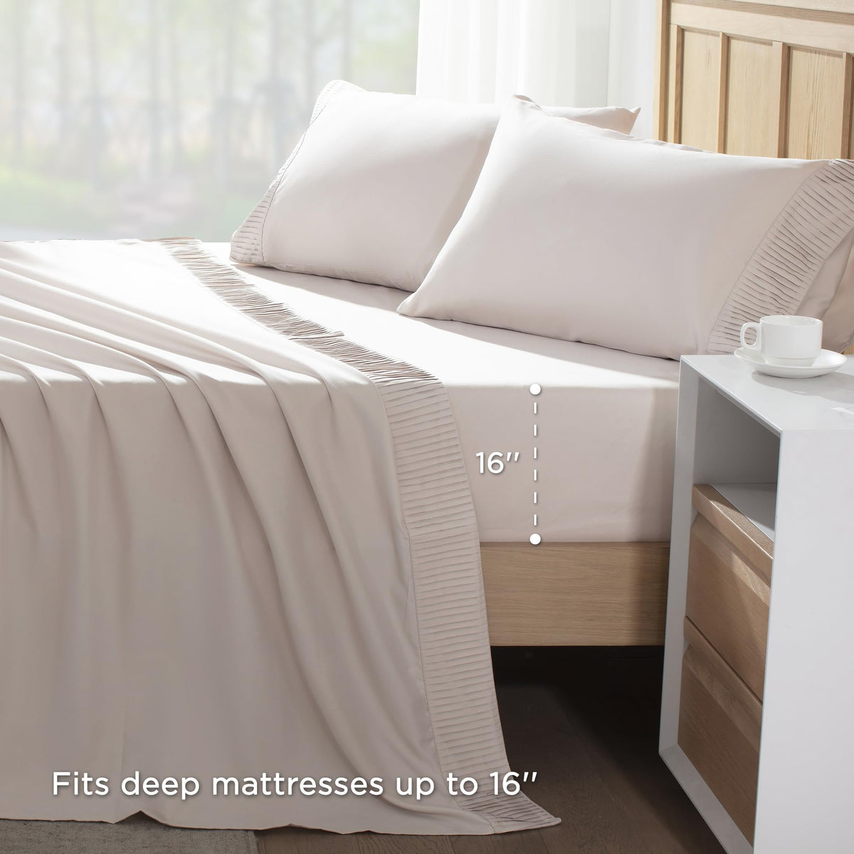Andency King Size Sheets Set 4 Pieces, Oatmeal Super Soft Sheets For King Size Bed, Microfiber King Sheet Set, Deep Pocket Up To 16', Hotel Luxury Breathable & Cooling Bedding Sheets & Pillowcases