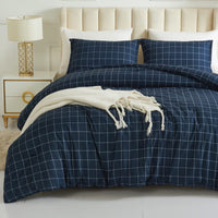 Andency Navy Grid Comforter Set Full Size (79X90 Inch), 3 Pieces(1 Grid Comforter And 2 Pillowcases), Summer Lightweight Microfi