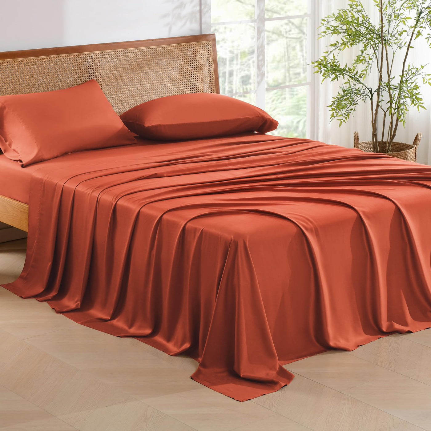 Andency Orange King Size Sheets Set, 100% Viscose Derived From Bamboo, Cooling King Sheets, Deep Pocket Up To 16', Silky Soft Bed Sheets, Hotel Luxury Breathable Bedding Sheets & Pillowcases…