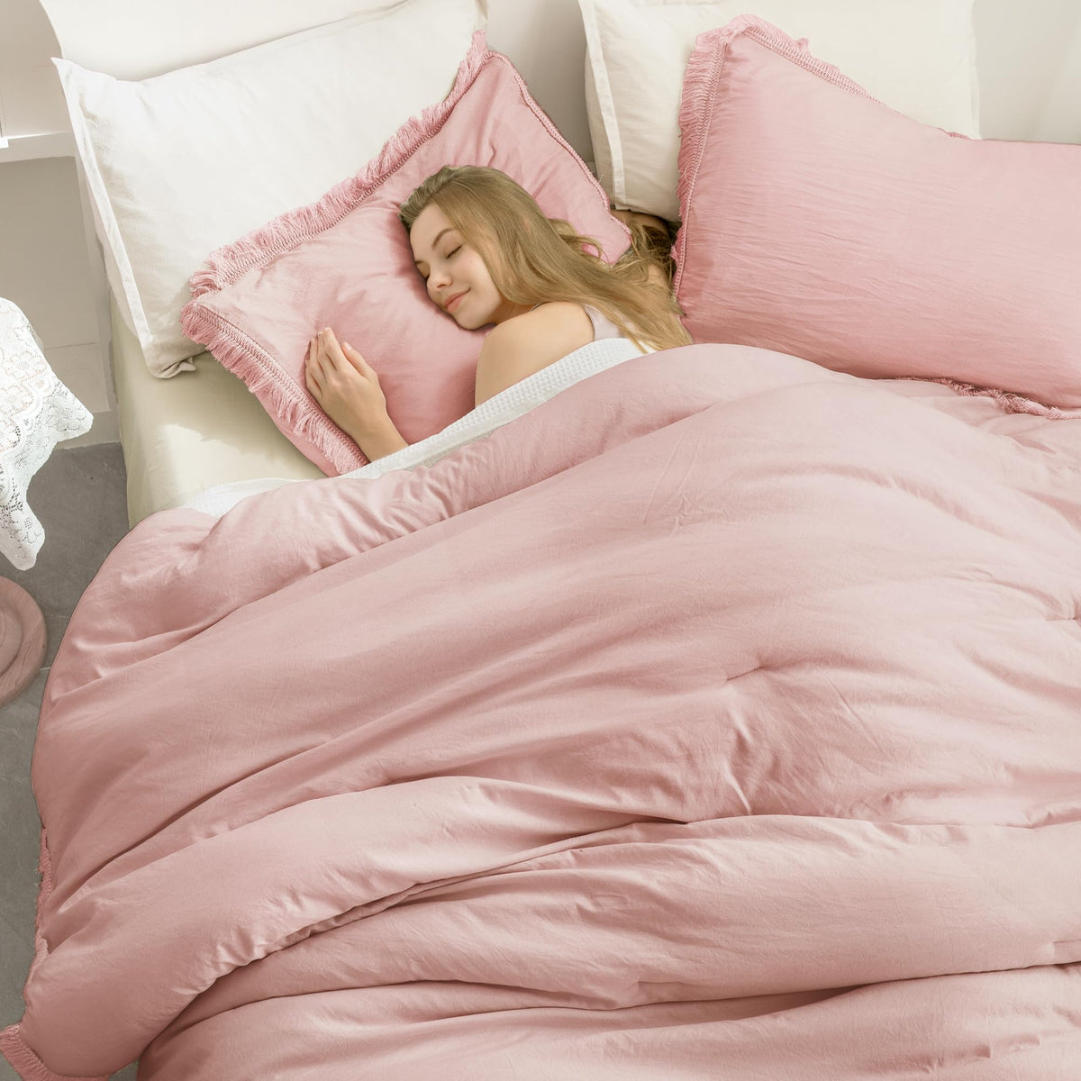 Andency Pink Comforter Set California King For Girls, Blush Boho Women Tassel Lightweight Bedding Comforter Sets, 3 Pieces All Season Soft Fluffy Fringe Bed Set (104X96In Comforter & 2 Pillowcases)