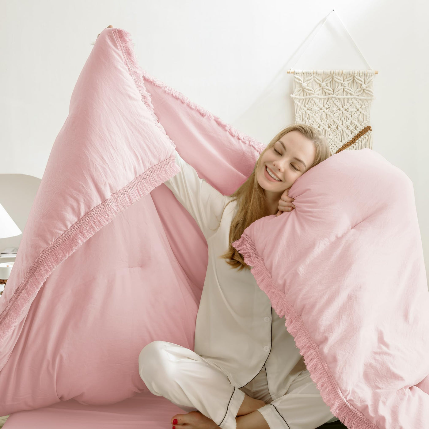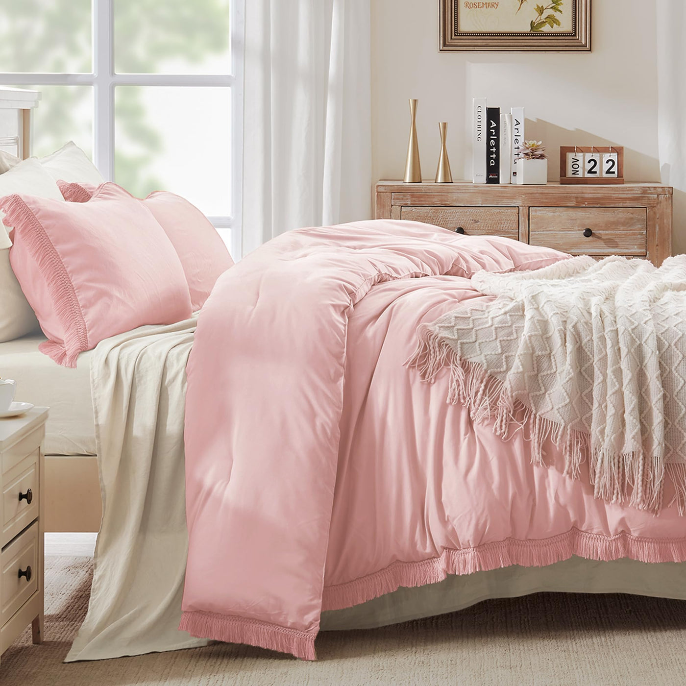 Andency Pink Comforter Set California King For Girls, Boho Women Tassel Lightweight Bedding Comforter Sets, 3 Pieces All Season Soft Fluffy Fringe Bed Set (104X96In Comforter & 2 Pillowcases)