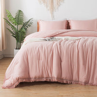 Andency Pink Comforter Set King Size For Girls, Blush Boho Women Tassel Lightweight Bedding Comforter Sets, 3 Pieces All Season