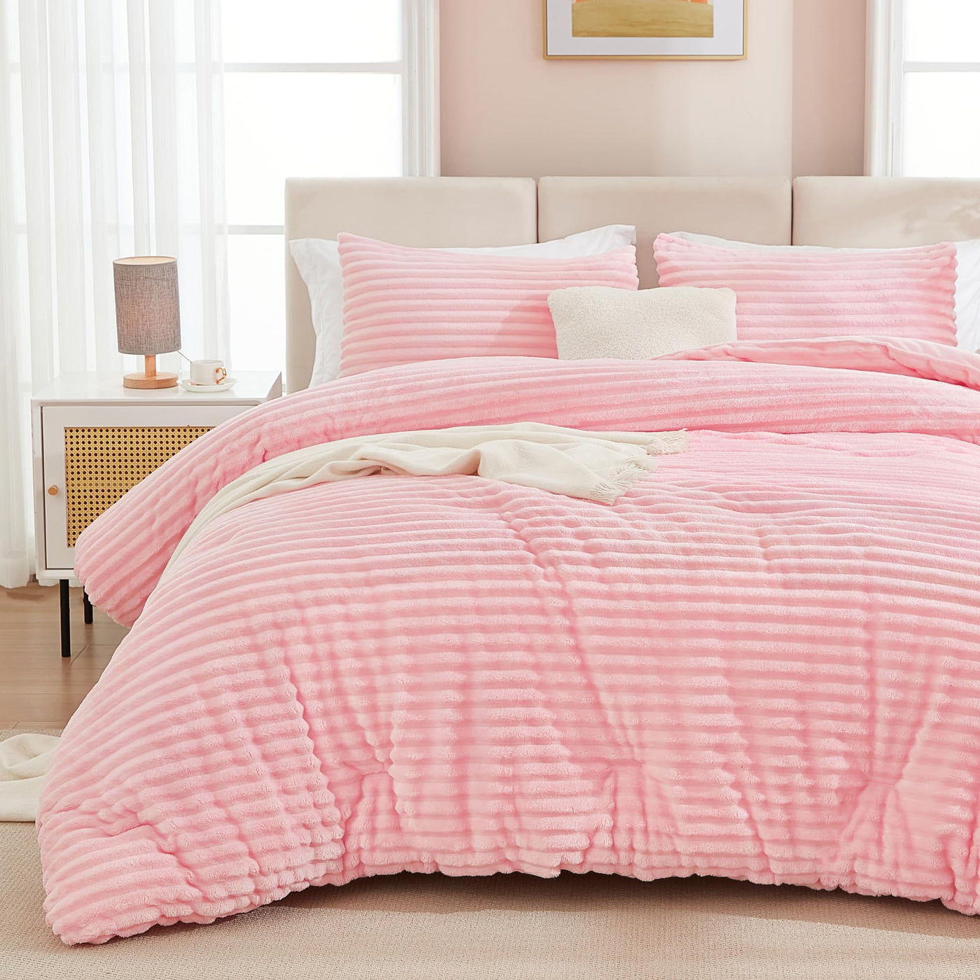 Andency Pink Comforter Set Queen, 3 Pieces Fleece Comforter Set For Queen Size Bed, Soft Warm Fluffy Fuzzy Luxury Plush Bedding