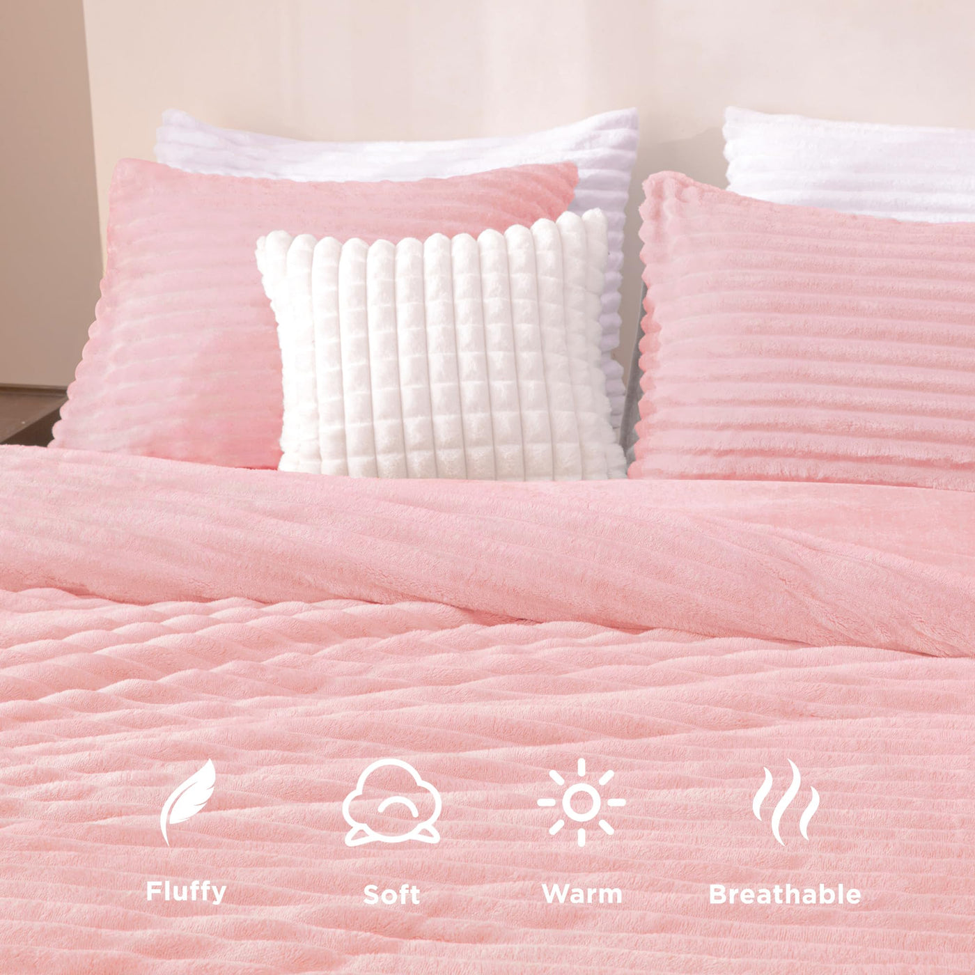 Cuddle With Creamy & Warm Comforter:Andency Pink Fluffy Comforter Boasts A Super Comfy Fuzzy Texture, Like Cats Sleep Around You. With The Fluffy Flannel On One Side While The Ultra-Fine Velvet On The Reversed Side, This Warm Faux Fur Comforter Set Embraces A Cloud-Like Experience.