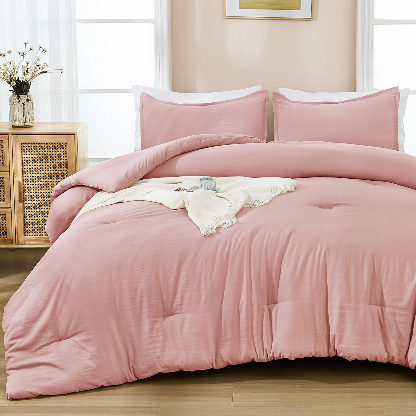 Andency Pink Comforter Set Queen Size - 7 Pieces Bed In A Bag Queen Bedding Comforter Sets, Summer Plain Soft Lightweight Comforter With Fitted Sheets, Flat Sheets, Pillowcases & Shams