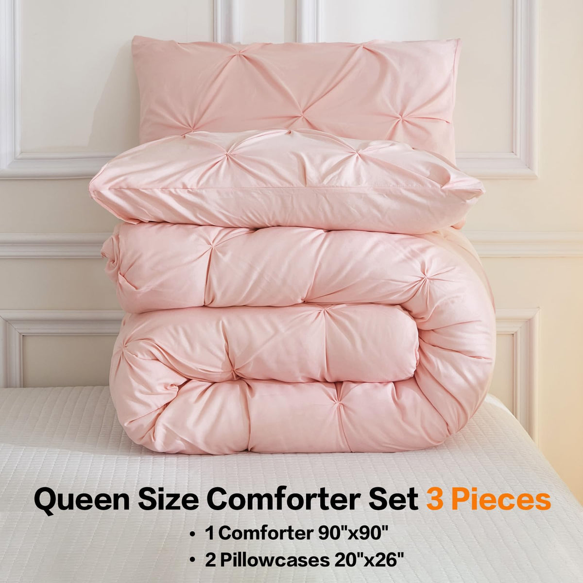 Andency Pink Comforter Set Queen(90X90Inch), 3 Pieces Soft Lightweight Cute Pinch Pleat Comforter Set For Queen Bed, All Season Western Warm Bed Set For Girls Women