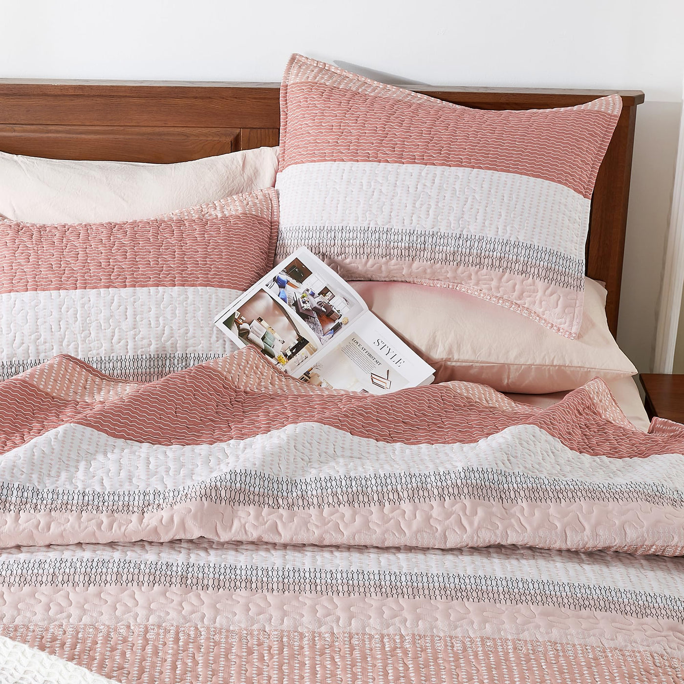 Andency Queen Quilt Bedding Set Blush Pink, 3 Pieces Patchwork Summer Striped Ultra Soft Lightweight Bedspreads, Coverlets Set With 2 Pillow Shams For All Seasons (90'X96')