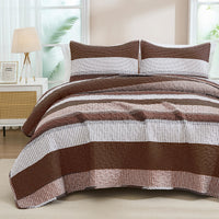 Andency Queen Quilt Bedding Set Brown, 3 Pieces Patchwork Coffee Striped Ultra Soft Lightweight Bedspreads, Coverlets Set With 2
