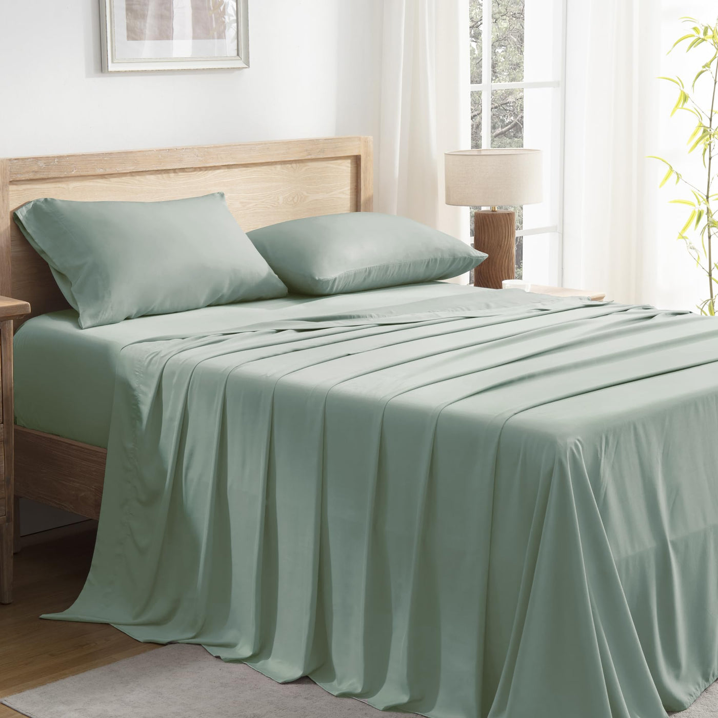 Andency Sage Green California King Sheet Sets, 100% Viscose Derived From Bamboo, Cooling Sheet Set, Deep Pocket Up To 16', Silky Soft Bed Sheets, Hotel Luxury Breathable Bedding Sheets & Pillowcases…