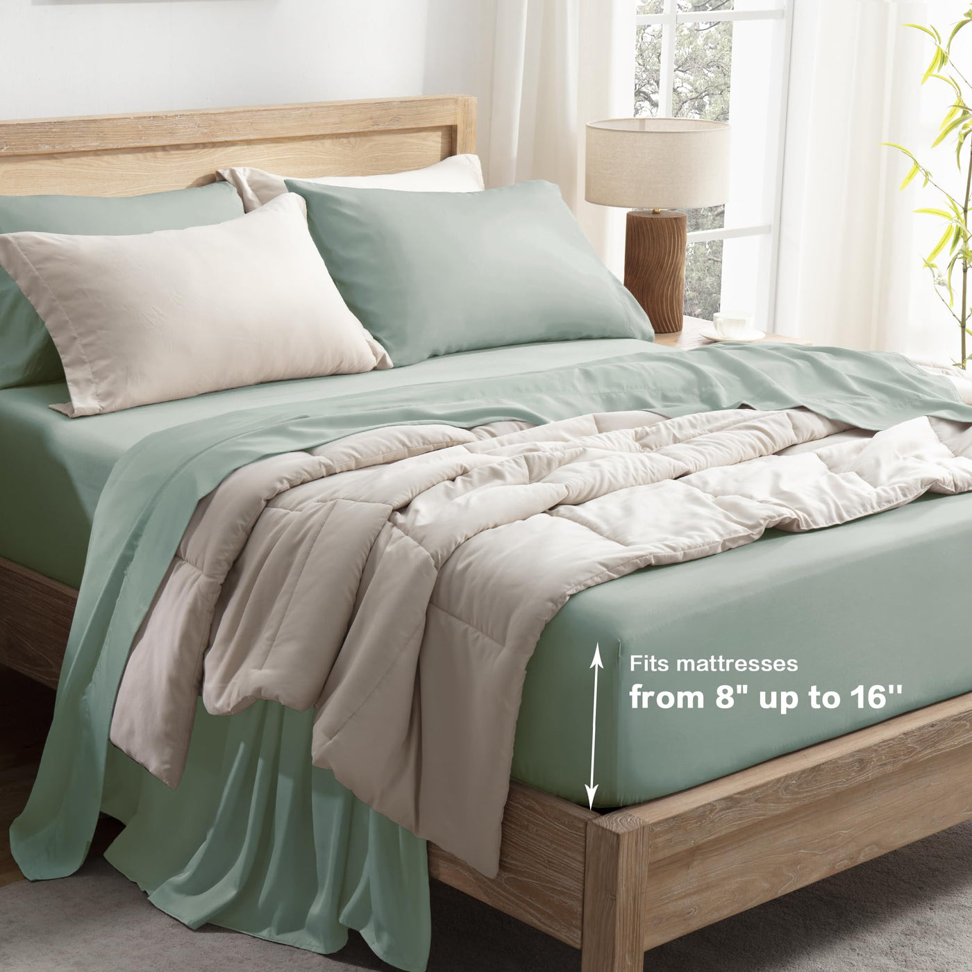 Andency Sage Green Queen Sheets Set, 100% Viscose Derived From Bamboo, Cooling Bed Sheets Queen Size, Deep Pocket Up To 16', Silky Soft Sheets, Hotel Luxury Breathable Bedding Sheets & Pillowcases…