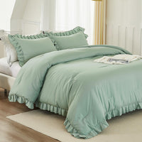 Andency Sage Green Twin Comforter Set, 2 Pieces Kids Ruffle Comforter Set Twin(66X90Inch), Farmhouse Shabby Chic Comforter Set,