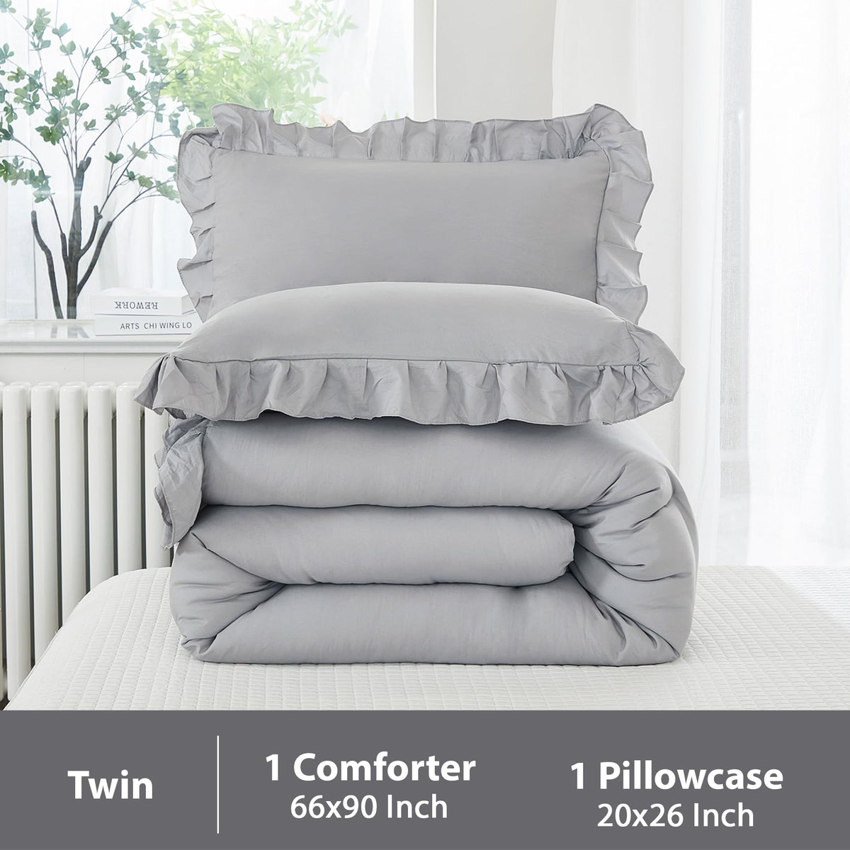 Andency Silver Gray Comforter Set Full Size, 3 Pieces Solid Ruffle Shabby Chic Bedding Comforter Sets, All Season Lightweight Fluffy Soft Microfiber Bedding Set (79X90 Comforter & 2 Pillowcases)