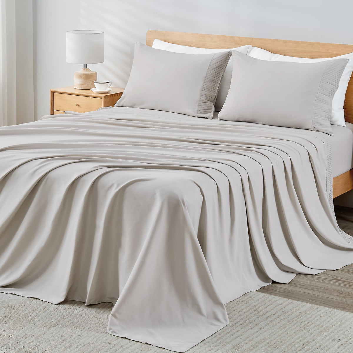 Andency Tannish Grey Sheets Queen Set 4 Pieces, Super Soft Sheets For Queen Size Bed, Microfiber Queen Sheet Set, Deep Pocket Up To 16', Hotel Luxury Breathable & Cooling Bedding Sheets & Pillowcases