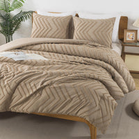 Andency Taupe Comforter Set King Size, Boho Soft Warm Tufted Bedding Comforter Sets For King Size Bed, 3 Pieces Aesthetic Chevro